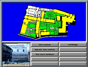 Una pagina della scheda relativa al complesso monumentale di S.Scolastica in Bari. Facendo click sull'immagine grafica, si può visionare nel riquadro in basso a sinistra, un filmato QuickTime relativo all'area selezionata. Il pannello è predisposto, anche, per una serie di pulsanti, a disposizione dell'utente, per l'arricchimento della scheda.