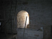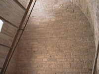 Un secondo problema riguardava il recupero delle pareti. Queste erano quasi completamente rivestite da un intonaco (ovviamente fatiscente) e la scelta dei progettisti fu quella di eliminarlo e riportare a vista la struttura muraria.