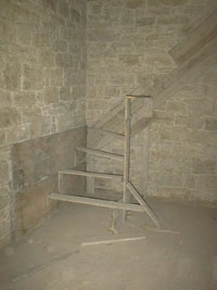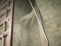 Sempre in tema di bucature, va ricordato che al secondo piano la torre conservava una piccola balaustra con scolpita ad un angolo una colonnina. Ovviamente la balaustra e' stata conservata ma le si e' aggiunta una ringhiera in ferro con corrimano ad altezza d'uomo.