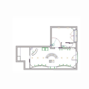 Questo locale č nato dall'ampliamento del corpo pių lungo con il locale adiacente destinato al controllo della vista. La soluzione ha previsto un bancone centrale e degli appositi porta occhiali distribuiti in tutto il locale per meglio consentire la scelta da parte dell'acquirente delle lenti pių adatte.