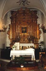 Dossale barocco in legno scolpito e indorato, proveniente dalla chiesa di Ciurcitano dopo la sua sconsacrazione.
