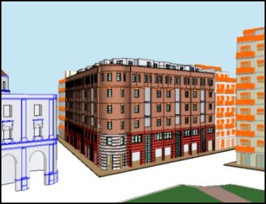 Prospettiva dal basso relativa ad edifico ad angolo in via Perrone a Bari