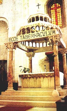 L'originario ciborio fu demolito durante il periodo Barocco e fu costruita una enorme "macchina" decorata con stucchi, dorature, statue lignee e opere pittoriche.