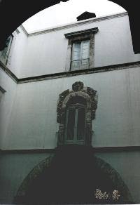 Vista dell' interno del cortile .Prospetto con vista dell' interno delle abitazioni