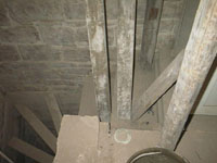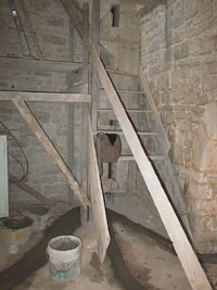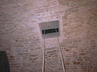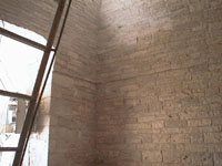 Un secondo problema riguardava il recupero delle pareti. Queste erano quasi completamente rivestite da un intonaco (ovviamente fatiscente) e la scelta dei progettisti fu quella di eliminarlo e riportare a vista la struttura muraria.