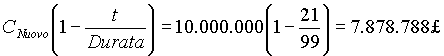 Posto auto (AUT): è pari al costo di realizzazione, stimato in £ 10.000.000, deprezzato ipotizzando una vite utile di 99 anni, essendone trascorsi già 21: