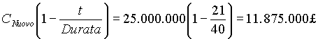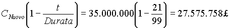 Box auto (BOX): è pari al costo di realizzazione, stimato in £ 35.000.000, deprezzato ipotizzando una vite utile di 99 anni, essendone trascorsi già 21: