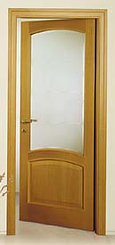Porta in noce massello con pannello in vetro satinato. Ditta