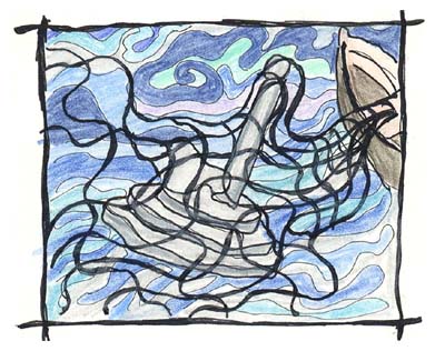 che viene immaginata come ripescata dalla rete di un pescatore.