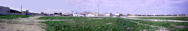 | L'analisi dello skyline mostra con chiarezza il susseguirsi di coperture metalliche a falde inclinate e a botte, mentre le ciminiere in disuso e i grandi macchinari di sollevamento e movimento dei carichi, segnalano la destinazione d'uso della zona. |
