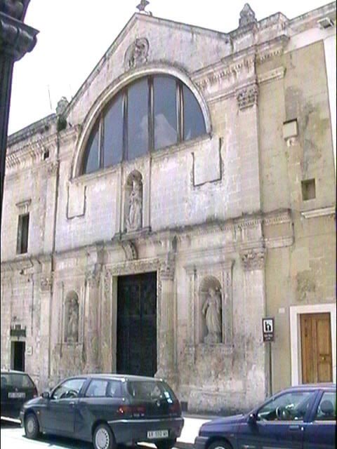 Costruita tra il 1668 e il 1702, fu denominata Purgatorio dalla omonima confraternita che finanziò la sua realizzazione; nel 1714 prese l’attuale denominazione imposta dalle suore Clarisse che mutarono la destinazione dei locali attigui da ospedale a convento; i locali del convento ospitano attualmente le sale espositive del museo Ridola. Nella facciata la parte superiore è occupata da un lunettone sormontato dall’immagine di Dio; quella inferiore da due statue raccolte nelle nicchie, che limitano il portale in legno, sul quale sono incise teste di animali. L’interno è ad una navata e termina con un arco a sesto acuto; di rilievo l’altare maggiore e quelli laterali, in stile barocco. |