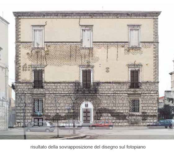 l'immmagine prospettica A. L'immagine raddrizzata B è un fotopiano, essa infatti può essere intesa come un oggetto bidimensionale, dato che la terza dimensione è trascurabile rispetto alla distanza di osservazione. Quindi, supposto il parallelismo tra il prospetto e la superficie sensibile, si può ritenere che sia una rappresentazione in scala della realtà, nota una misura di riferimento, per proporzionalità risultano definite tutte le altre. Prova a rilevare le distanze. Parimenti si può ricorrere ad altri programmi per ottenere una rappresentazione grafica del prospetto. |
