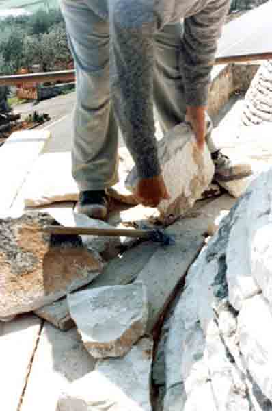 La posa in opera delle chiancole, realizzato dal maestro trullaro, deve tener conto dello sfalsamento delle stesse tra i filari.