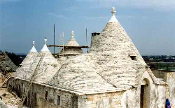 A termine dei lavori, il trullo presenta una copertura di colore chiaro, dovuto alla lavorazione delle "chiancarelle". L'azione degli agenti atmosferici ne conferiranno un colore pił scuro tipico dei trulli.