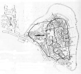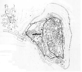 | 5. FINE MEDIOEVO (Angioini e Aragonesi) • Costruzione di archi di collegamento tra i diversi corpi di fabbrica. • Costruzione di scalinate esterne per accedere al primo piano delle abitazioni. • Opere di abbellimento urbano rappresentate, per motivi di clima e di cultura, non da logge pubbliche e portici, ma da "sedili",spazi della città, a volte coperti, situati accanto ai luoghi delle convergenze pubbliche ed adibiti alla sosta delle persone. • Distinzione tra area a funzioni direttive e simboliche (in prossimità dei due principali poli urbani: castello e cattedrale) ed altre costruzioni con funzione prevalentemente residenziale. • Introduzione all’interno degli isolati di spazi liberi, con funzione di corti. 6. XVI - XVIII SECOLO • Espansione urbana verso la parte sud del promontorio, al fine di ricavare altre aree edificabili. • Sistemazioni urbane promosse dal potere ecclesiastico: - Costruzione del convento di Sant’Antonio ad opera dei francescani. - Ristrutturazione del campanile della Cattedrale di Santa Maria Assunta (molto importante dal punto di vista urbano per la posizione che esso viene ad assumere rispetto a via Umberto I, uno dei percorsi principali del centro cittadino). |