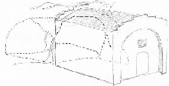 Il tipo di volta più diffuso è quello "a botte a tutto sesto" , che nel linguaggio locale è detto "lamia a punto reale " Altro tipo di volta è quello a "cupola":copertura di vani a pianta circolare e chiusura di cisterne e pozzi scavati nel banco tufaceo. Meno diffuse sono le volte costruite in mattoni di laterizio, composte da due o tre file di mattoni disposte in folio , generalmente allettati da gesso. | |