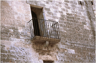 Forte elemento di caratterizzazione delle facciate sono i "balconi", elemento architettonico accompagnato dalla presenza delle "mensole" che concorrono a conferire maestositą e prestigio. Diverse sono le soluzioni nel sistema dei parapetti (pieni, a colonnine, con ringhiera ), le mensole ricavate con uno , due, tre conci di tufo in relazione al periodo storico.