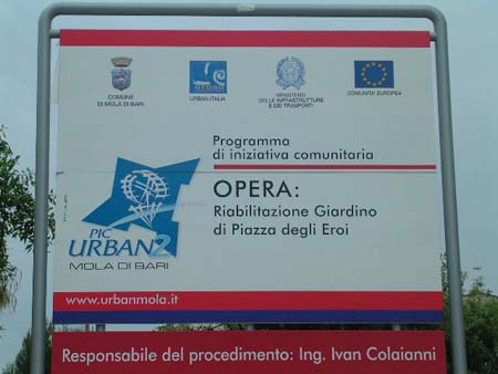 I giardini di Piazza degli Eroi sono situati in zona centrale, adiacente al complesso conventuale di S. Domenico, e rappresentano uno storico punto di aggregazione spontanea, utilizzato essenzialmente dagli agricoltori della città .L'intervento è finalizzato alla riqualificazione ed alla rivitalizzazione di una zona nevralgica del centro urbano che, insieme a Piazza XX Settembre e ad altri spazi pubblici di particolare valenza sociale, costituirà un sistema di ridistribuzione della qualità e della vivibilità urbana. Il progetto prevede la ripavimentazione delle aree pedonali perimetrali, l'integrazione vegetale e la conservazione di piante di pregio esistenti, il rifacimento dell'impianto di illuminazione ed il rinnovo dell'arredo urbano. Il centro della piazza sarà arricchito da una vasca ornamentale.