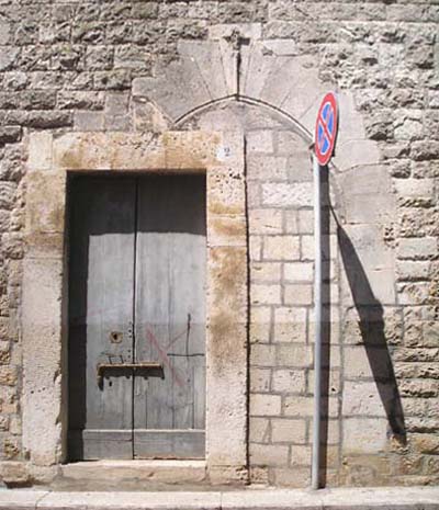 Porta murata a sesto rialzato con chiave di volta a decorazione gotica, situata sul lato est e appartenente alla vecchia costruzione (prima del 700).