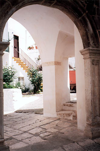 Un primo scorcio del cortile si coglie attraverso l'arco a tutto