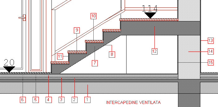 7 Gradino portante in cls armato a sbalzo da parete     d'ambito (alzata=18,75cm; pedata=30cm)