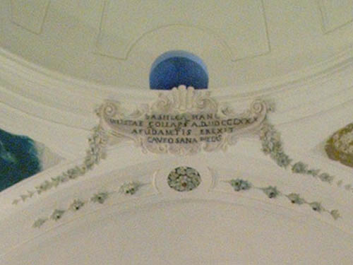 BASILICA HANC / AIUSTAE COLLAPS.A.D.MDCCLXXX / A FUNDAMENTIS EREXIT / CAVEOSAM PIETAS
