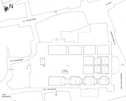 Sotto il piano di calpestio d'ingresso si trovano i "cameroni" per le sepolture. Sotto l'altare maggiore si trovano le sepolture per il clero. Nell''ultimo restauro, il massetto di cls per la realizzazione della nuova pavimentazione ha reso inaccessibili i sotterrranei. |