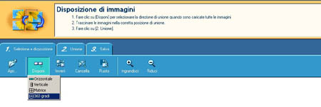 Caricate le immagini andate su DISPONI e scegliete 360° e premete unione.