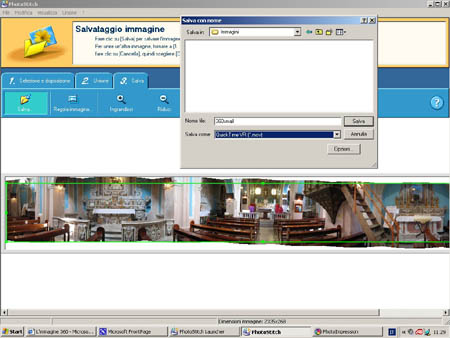Unite l'immagini  bisogna salvare il risultato.Andate sulla cartella SALVA e comparirà il riquadro dove dovrete segnare Il nome che volete dare alla panoramica e scegliere  l'estensione da dare al file (scegliete .mov).