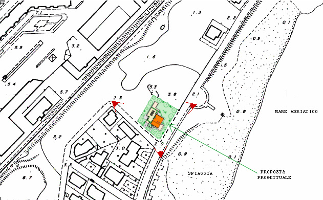 (Stralcio dal rilievo aerofotogrammetrico eseguito per la redazione del P.R.G. del Comune di Manfredonia - Scala 1:2000)